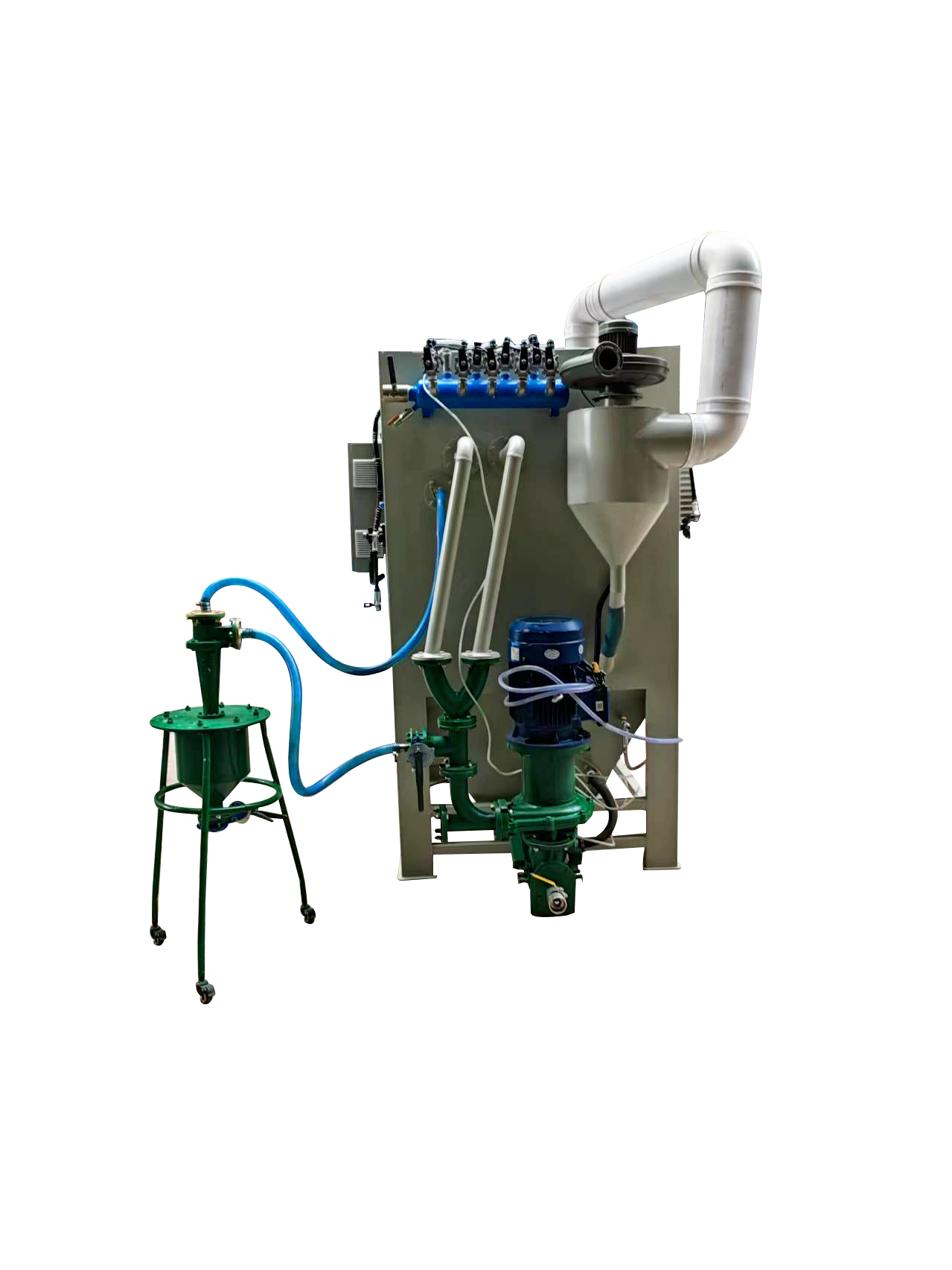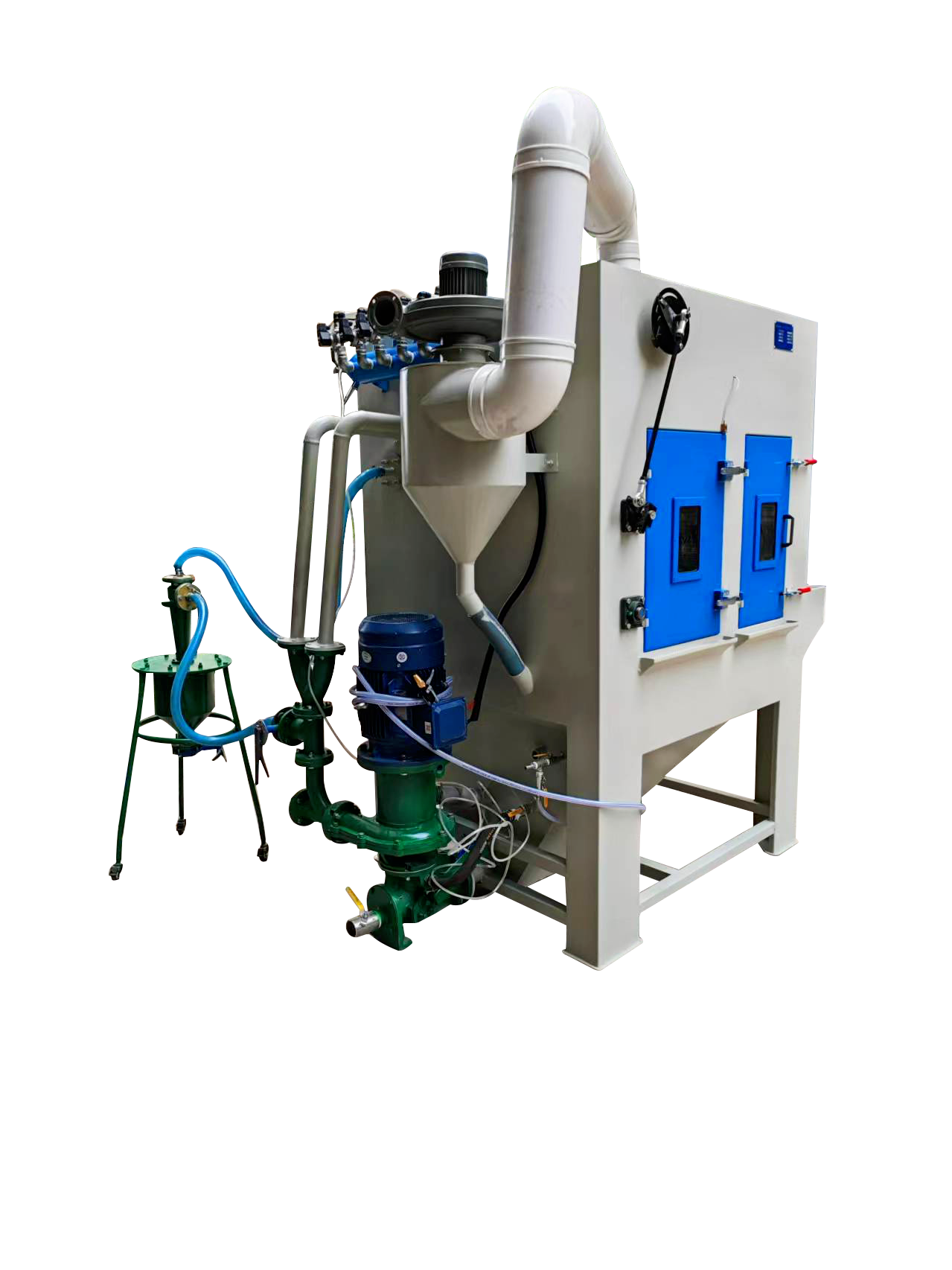 3, 配置專業(yè)的砂水泵,能高效混合磨料,噴砂后的產(chǎn)品手感更細膩、光澤度更好,和干式噴砂效果有明顯區(qū)別;
